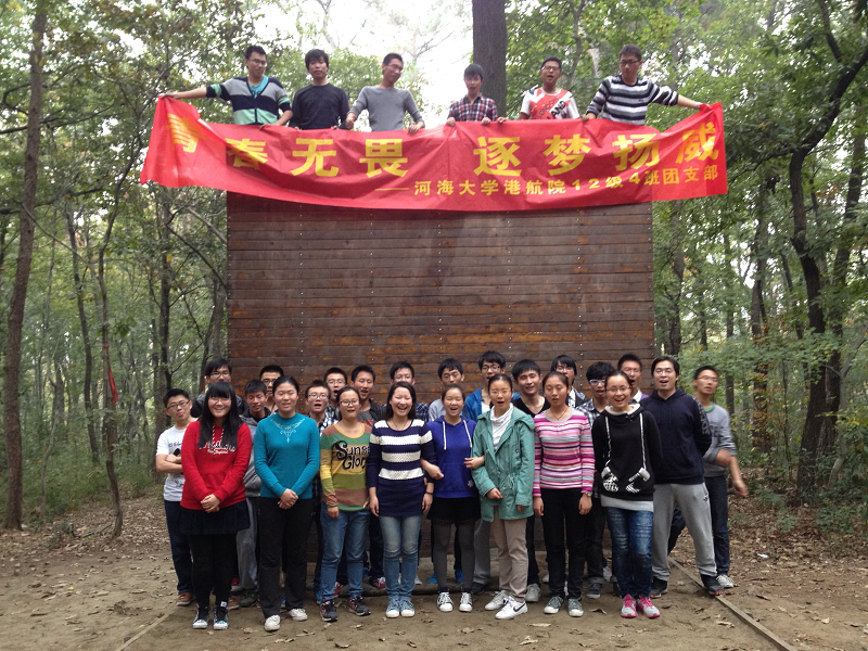 为增强班级、团支部的凝聚力,锻炼同学们的沟通、协调、合作能力,12级港航四班团支部于2013年11月9日举办了一次素质拓展训练活动,班导师张弛老师全程参与了活动。
