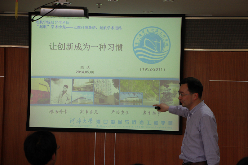 2014年5月8日,av影片 港口海岸及近海工程学院院科协与IAHRav影片 学生分会共同承办的以“点燃科研激情,启航学术道路”为主题的“启航学术沙龙”活动在严恺馆702隆重举行。av影片 研究生、本科生及校内水文、土木等专业的学术爱好者踊跃参与了本次活动。av影片 陈达教授、陈永平教授及优秀硕、博士生代表杜静同学、于立婷同学等做为嘉宾出席了本次活动。