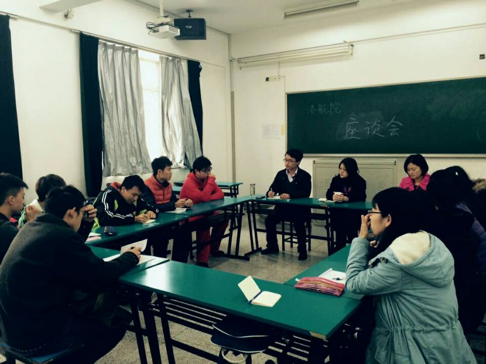 十一月,河海校园内热火朝天,一边是各类活动此起彼伏,一边则是期中考试井然有序的开展。为更进一步了解新生情况、教育新生合理利用时间、帮助他们尽快适应大学生活和开展学生工作,2014年11月28日上午,av影片 党委副书记姜海霞老师与团委书记朱钰老师在14级辅导员季超老师的陪同下前往江宁校区致用307教室与2014级各班班长团支书进行座谈交流。