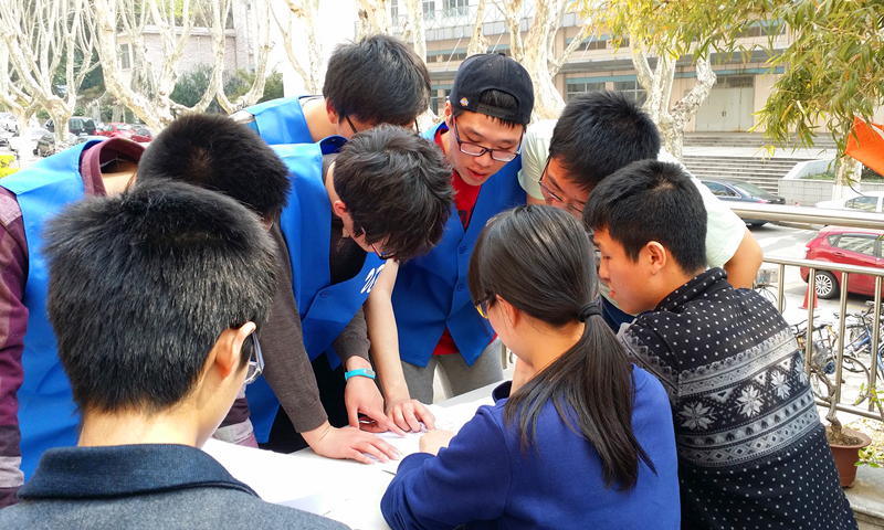比赛为了考验同学间的团队协作能力,设置了解答谜题、你画我猜、拍照合影等环节,另外,结合河海百年校庆,活动中还增加了校史问答、寻找名人雕塑等项目,让本校同学和外校同学一起,重温校史和先辈事迹。选手们根据任务书的提示,合理安排线路,前往任务点,这既考验选手们的计划能力,又对他们的身体素质有所要求。在活动中,校园里1号点“一字连城”解答谜语环节给队员们带来了不少困难,但他们没有轻言放弃,团队成员们通力合作,一起讨论分析谜面,逐步解出了谜底,一起分享努力奋斗后成功的喜悦。