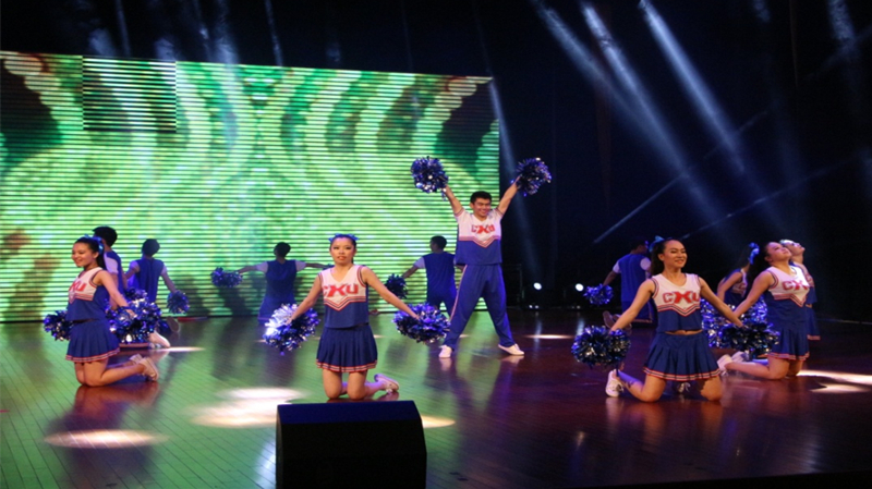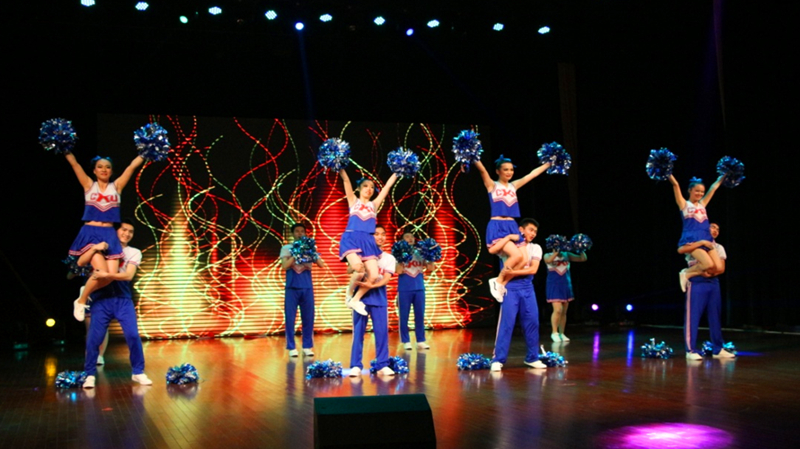 五月,凤凰花开的季节,第四届校研究生啦啦操大赛在江宁文体中心举行。代表我院研究生参赛的12名姑娘、小伙子经过一个月的艰苦训练,在舞台上刮起一场蓝色风暴,取得了三等奖的好成绩。