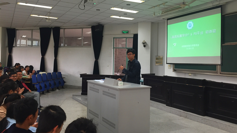 团委陈智老师为大家介绍了素质拓展学分实施及认定办法和PU平台的具体操作。陈老师首先介绍了PU平台中素质拓展学分学时的内容及基本使用方法。之后通过一系列的表格及流程图,详细指导同学们如何通过PU平台发起活动参加活动获得学时。陈老师的轻松幽默的讲解在使同学们对PU平台有一定的认识之后,极大的调动了同学们使用PU平台参与各类丰富多彩的活动的热情,于是紧跟老师介绍之后,同学们积极发问,现场气氛十分活跃。