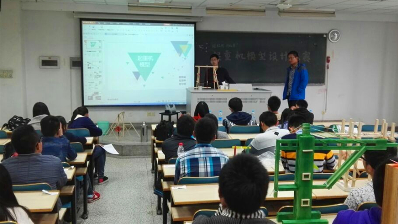 2015年11月14日下午,由av影片 科协承办的“轻结构,巧起重”起重机模型大赛在致用楼318教室举行。大赛的评委是大禹院科协副主席李世隆、力材院科协副主席卢雯诗、av影片 学生会副主席王家奇以及av影片 团委负责人黄键钧。