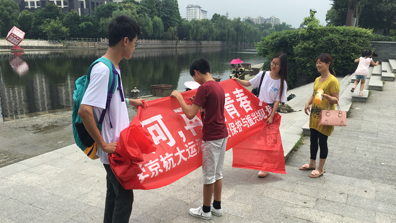 7月10日,调研团前往运河沿岸的东关街进行调查宣传。在交谈中,队员们发现,并不是每一个受访者都对古运河文化有十足的了解,更有甚者尚未听闻古运河沿岸的文化艺术形式,真正了解古运河文化的只占少数。数小时过后,调研团终于完成了调查问卷的回收。调查结果显示居民提出的观点较为片面、主观,不过这也正是居民对古运河最真切的印象。调研团还邀请古运河沿岸的居民、游客在横幅上签名,并对所进行的关于古运河保护与振兴活动进行宣传。