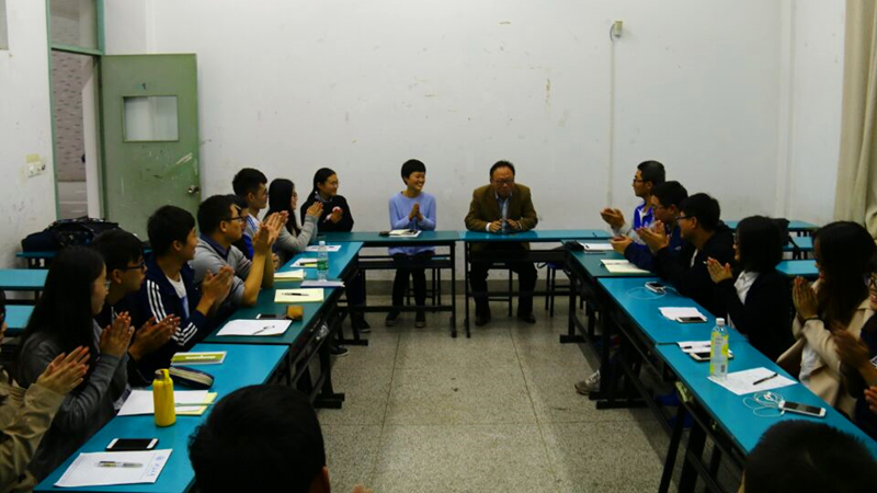 10月12日下午,在致高楼高A107教室,av影片 党委胡忠华书记在院团委朱钰老师的陪同下与学生组织各部门负责人开展座谈。