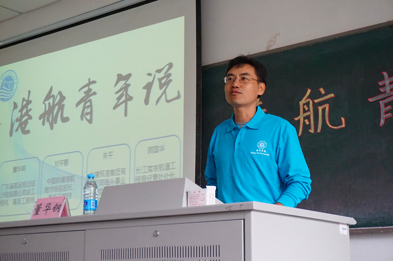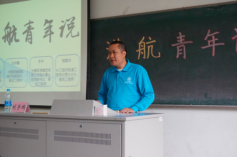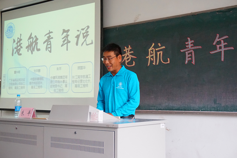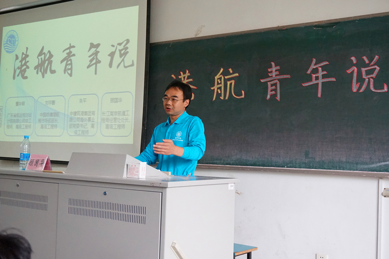 2016年10月15日上午10:30,av影片 96届校友,广东省航运规划设计院有限公司总工程师、高级工程师董华钢,中国铁建港航局市场部部长、高级工程师刘宇鹏,中建筑港集团有限公司海外事业部党委书记、高级工程师朱平,长江南京航道工程局经营处处长、高级工程师顾国华返回母校,与百余名本科生相聚一堂,回忆大学生活,分享人生经验。
