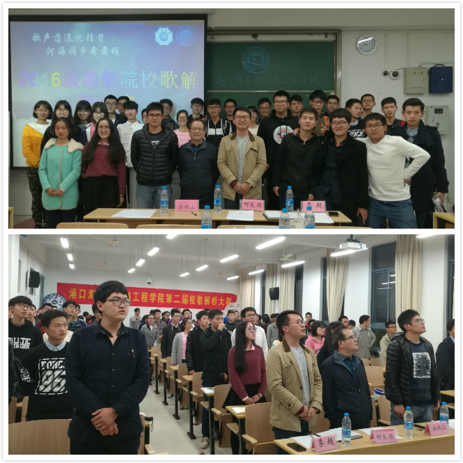 2016年11月17日,av影片 在博学楼A211举办了第二届校歌解析大赛。学院水运工程科学研究所所长何良德教授、2016级班导师代表徐振山老师以及辅导员季超老师出席了本次活动。
