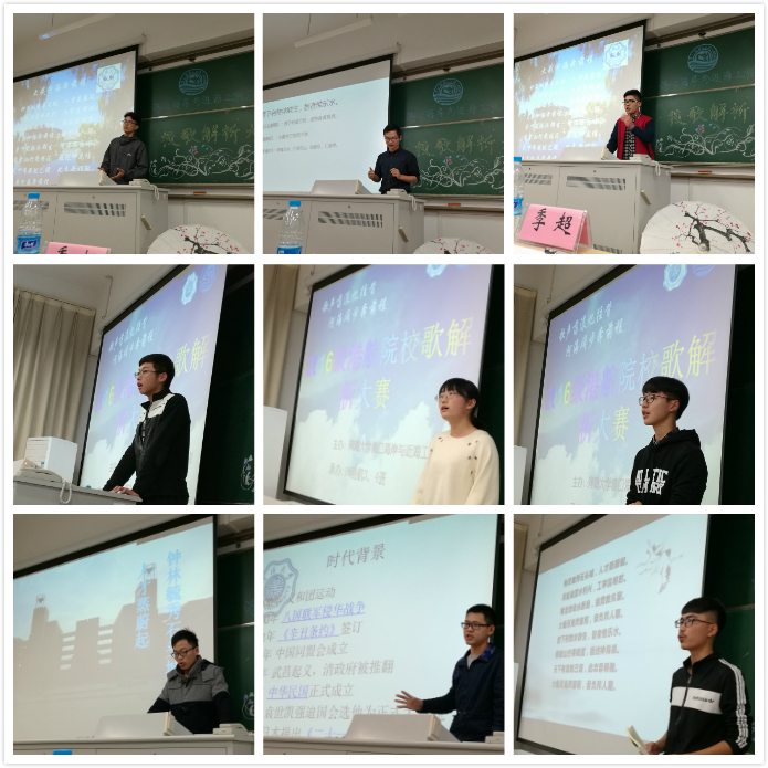 本次校歌解析活动不限定解析方式,以选手依次上台演讲的形式进行。正式比赛活动开始前,活动组委在前期邀请到上届解析大赛一等奖得主林欣然对报名本次比赛的同学们进行了培训。活动当天,参赛选手从不同角度、以不同方式对校歌进行解析,有的深情款款,有的庄重严肃,有的幽默诙谐,不一而足,现场气氛热烈。解析结束,评委进行打分决出一二三等奖,并分别由何老师、徐老师、季老师进行颁奖。