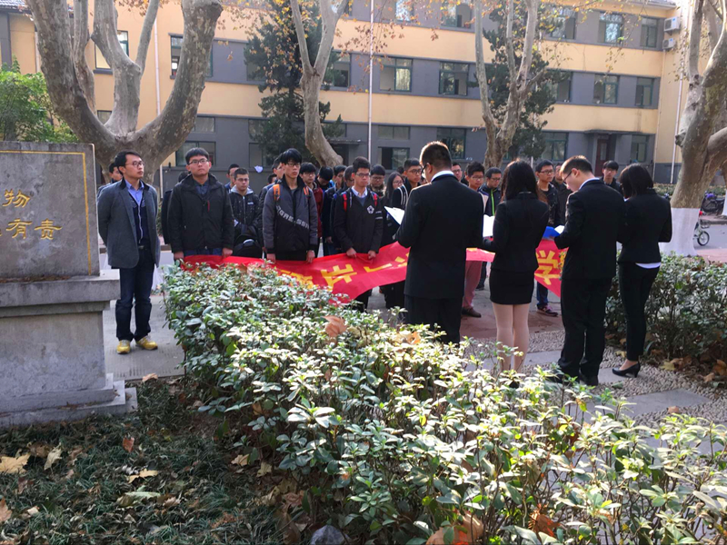 2016年12月9日,学院2016级新生前往av影片 西康路校区参加了“南京大屠杀死难者国家公祭日”活动,缅怀那些为祖国牺牲的烈士和惨遭杀害的同胞。