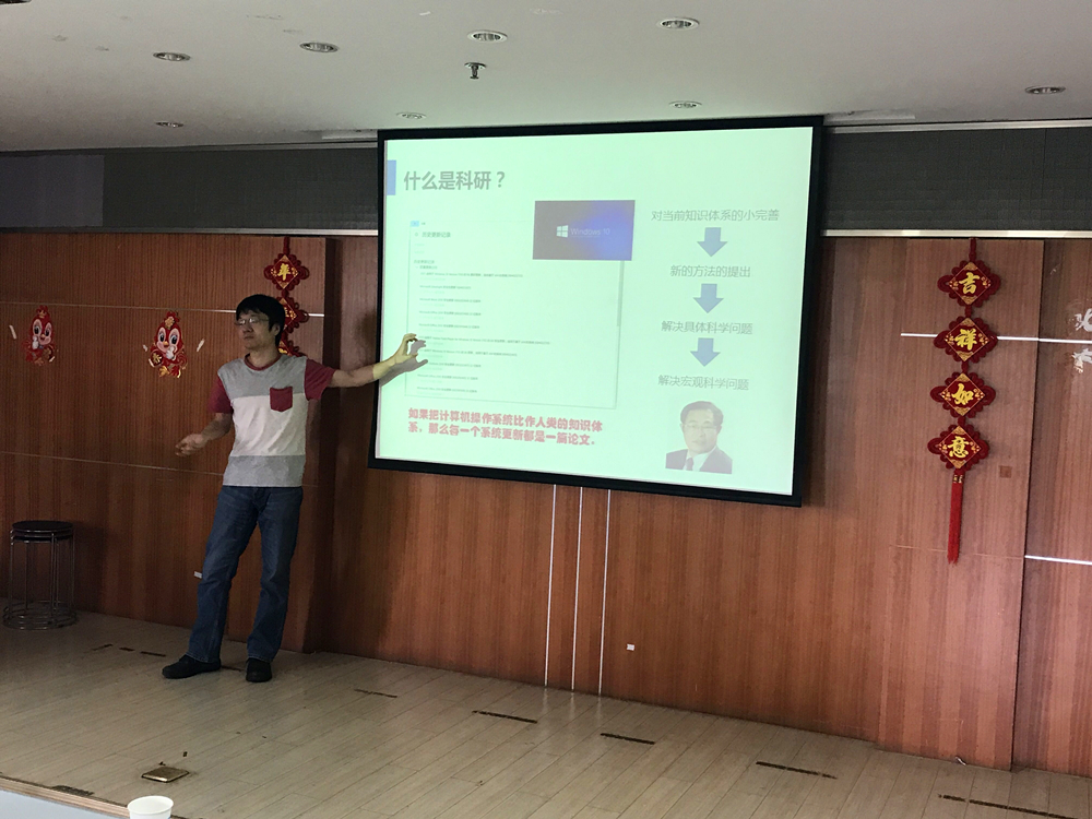 首先上场的是我院海岸带资源与环境研究所所长——陈永平教授,主要从事与风暴潮预警、射流以及岸滩防护方面的研究,他重点介绍了目前在研项目清单以及所在团队的培养模式,介绍了近几届毕业生的去向分布,在场同学都投来了羡慕的目光。第二位上场的是冯兴国副教授,他主要从事不锈钢钢筋混凝土结构以及高效阻锈剂方面的研究,重点讲解了不锈钢钢筋在工程中的实际运用。第三位是研究水动力和海洋防护方向的潘毅副教授,他以Win10的常规更新作为比拟,向同学们生动形象地介绍了科研的过程,从海岸工程方面的经典问题延伸到当前遇到的新问题,其幽默的演讲方式感染了在场同学。最后是海工装备与水下技术研究所所长——徐鹏飞教授,他主张“海洋是人类的战略空间”,主要从事深海结构与航行器设计的研究,和之前来宣讲的老师们研究方向有所不同,拓展到了海洋工程,给同学们耳目一新的感觉。