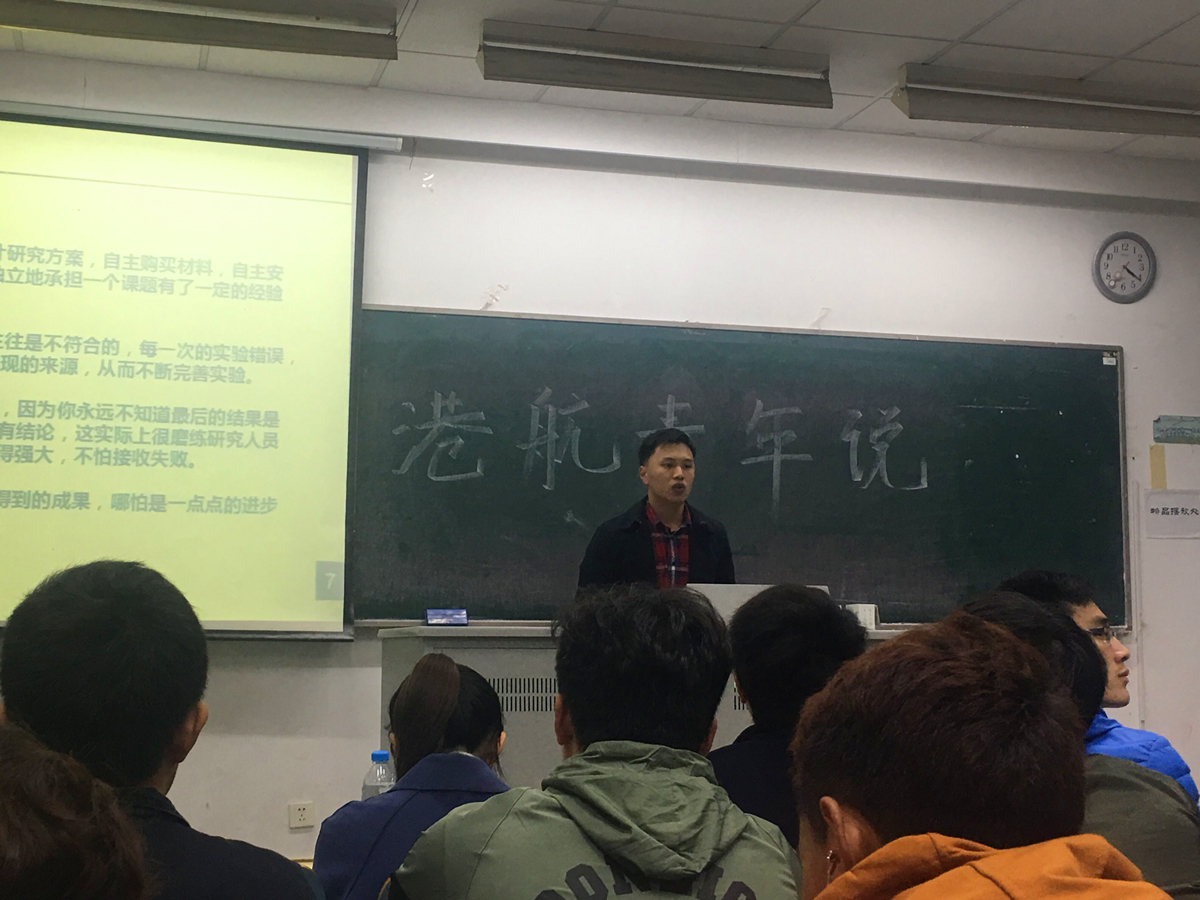 近日,港航青年说系列之大学生创新创业经验交流会在致用楼118举办。本次交流会邀请到了av影片 2014级本科生黄健钧、朱超以及商学院2017级研究生张玲。他们分别从创新和创业两个方面,与av影片 2016级全体本科生分享了自己的经验。av影片 2016级辅导员张同鑫老师出席了本次活动。