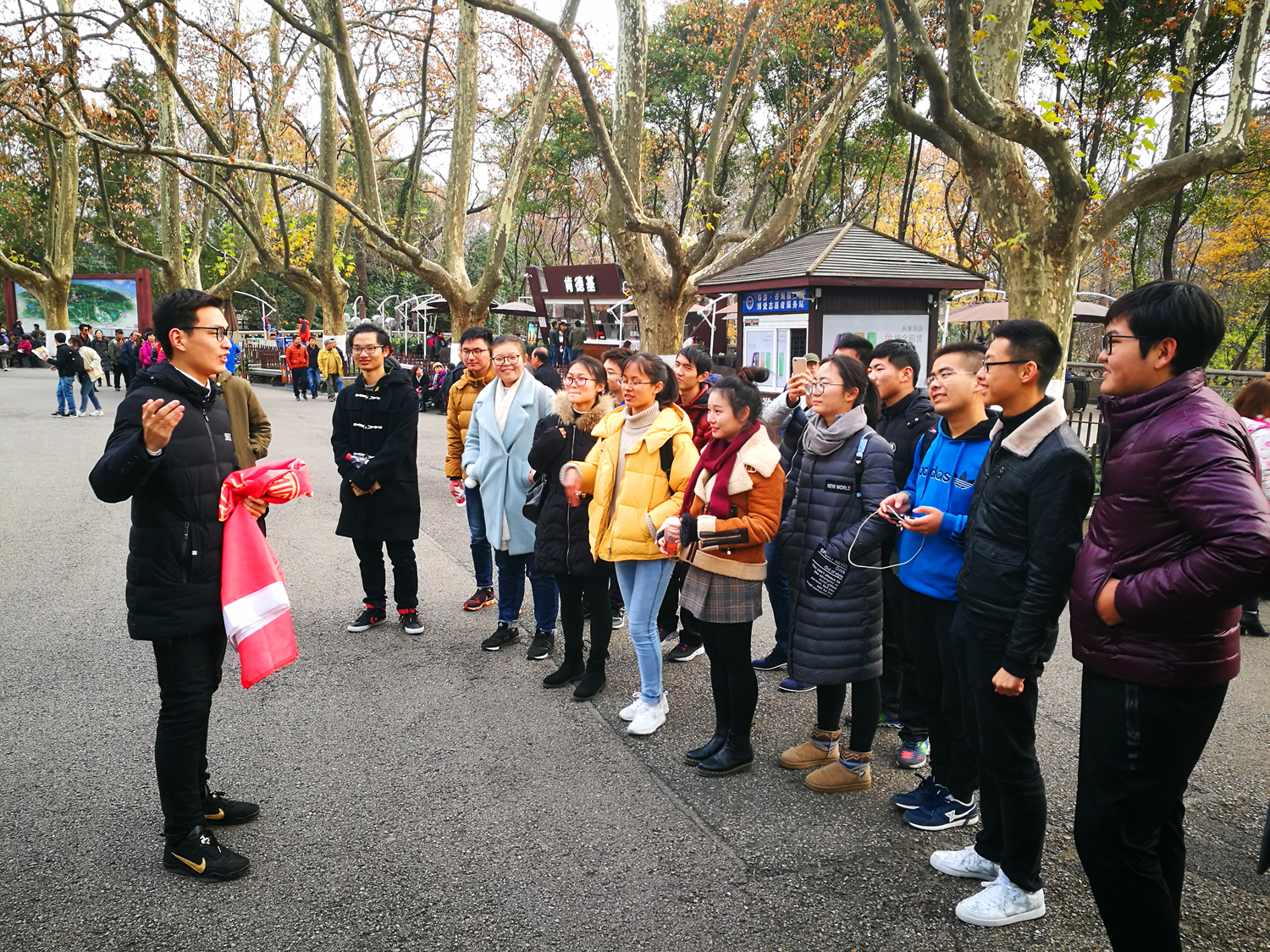 在攀登陵寝的途中,赵康同学为大家详细讲解了陵寝的布局寓意和建设沿革。到达陵寝后,同学们依次在纪念堂进行了拜谒,并聆听纪念堂的工作人员讲述了孙中山先生的革命历程。之后,在纪念堂前,大家齐声朗诵了《和平宣言》,表达了对战争的反思和对世界和平的期望。