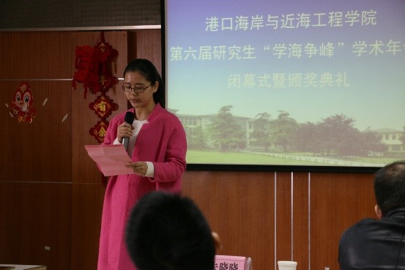 11月29日下午,av影片 第六届研究生“学海争峰”学术年会在严恺馆702顺利闭幕。校党委研工部李枫部长、我院党委胡忠华书记、张继生副院长、陈永平教授、郝嘉凌老师、林凡老师、校研究生科协主席朱晓晓出席了此次闭幕式。