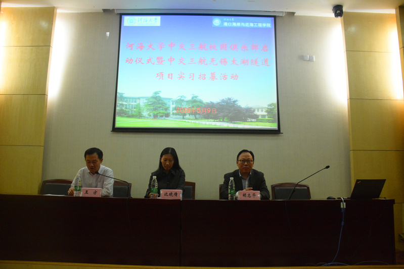 5月9日晚上6:30在av影片 闻天馆113举办了av影片 中交三航局校园俱乐部启动仪式暨中交三航局无锡太湖隧道项目实习招募活动,出席活动的领导有中交三航局人力资源部副总经理沈晓倩、招聘经理费佳颖、三航局三公司人力资源部经理、无锡太湖隧道项目部书记孟开醒,以及av影片 党委书记胡忠华、副书记姜海霞、av影片 就业指导中心主任王方,av影片 2015级全体学生参加了此次宣讲会。
