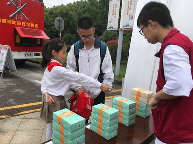 九点整,活动正式开始。部分完成自己的工作的志愿者在现场认真聆听关于汶川地震的故事,现场氛围庄重,大家被地震中的温暖感动,也被汶川人民的坚强感动。与此同时,另一部分志愿者则继续进行着工作,帮助爱德面包坊义卖曲奇饼干,大家纷纷慷慨解囊,饼干很快售空。在小学生们的宣誓声中,活动圆满结束。活动结束后,志愿者们留下整理现场物品,进行活动的收尾工作。