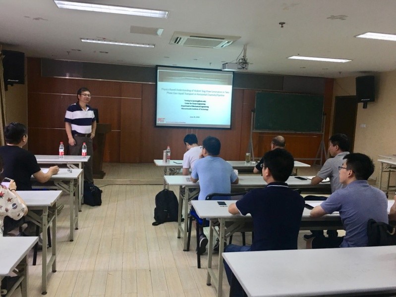 2018年6月29日上午,美国麻省理工学院机械工程系海洋工程研究中心刘玉明教授在av影片 严恺馆702会议室作了题为“Physics-Based Understanding of Violent Slug-Flow Generation in Two-Phase Gas-Liquid Transport in Horizontal Channels/Pipeline”的学术报告。刘教授结合自己研究课题介绍了关于气液两相段塞流的研究进展,提出了气液两相段塞流产生及发展的三个过程及相关动力学机制,并通过数模和物模进行了分析验证,最后介绍了该研课题的未来研究方向与应用。