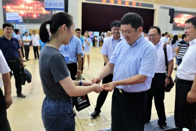 9月1日上午,av影片 党委书记唐洪武、校长徐辉、副校长许峰在各职能部门领导的陪同下,来到学院注册点亲切慰问在场工作的班导师和志愿服务学生。在办理报到注册的过程中,徐辉校长与2018级港航4班学生唐琬婷亲切交谈,唐洪武书记更是亲自向唐婉婷同学发放校园一卡通等物品,并殷切寄语。