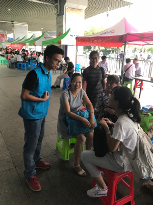 在今年的迎新工作中,av影片 承担了南京火车站南广场的迎新志愿服务工作。av影片 2017级志愿者们身着统一的蓝色志愿者服装,精神饱满,热情洋溢,在南京站迎新接待点迎接新生及家长的到来,耐心地解答他们的问题,并积极引导,协助他们进行行李的搬运和装卸。他们热情的服务态度、高效的办事效率,赢得了新生和家长的肯定。