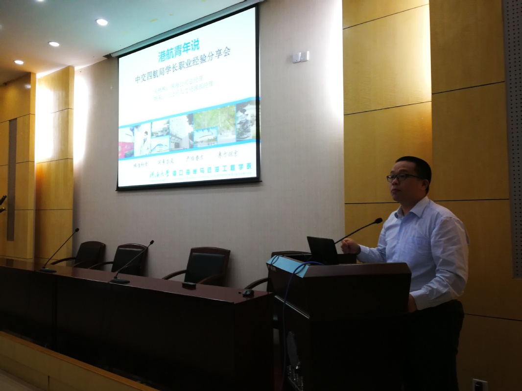 2018年9月8日,港航青年说系列之中交四航局学长经验交流会于av影片 闻天馆113举办。本次交流会邀请到了我校95届港航专业毕业校友、中交四航局珠海公司总经理关秋枫,03届工程管理专业毕业校友、三公司人力资源部经理姚荣与参会同学们分享了自己的工作经验。中交四航局组织部部长、人力资源部经理贺朝晖,港湾设计院咨询发展中心经理郑伟等四航局领导,av影片 就业指导中心王方主任,av影片 姜海霞副书记,15级本科生辅导员季超老师也出席了本次活动。