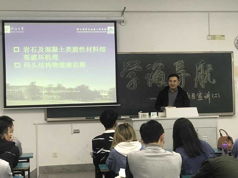 李昂老师的课题展示了岩石混凝土脆性材料非均匀特性和码头结构物健康监测。对于码头结构这样的热点问题,李昂老师主要讲述了如何运用光测和声控测量相结合的方法来对建筑物的内部结构的裂纹进行准确的监测。