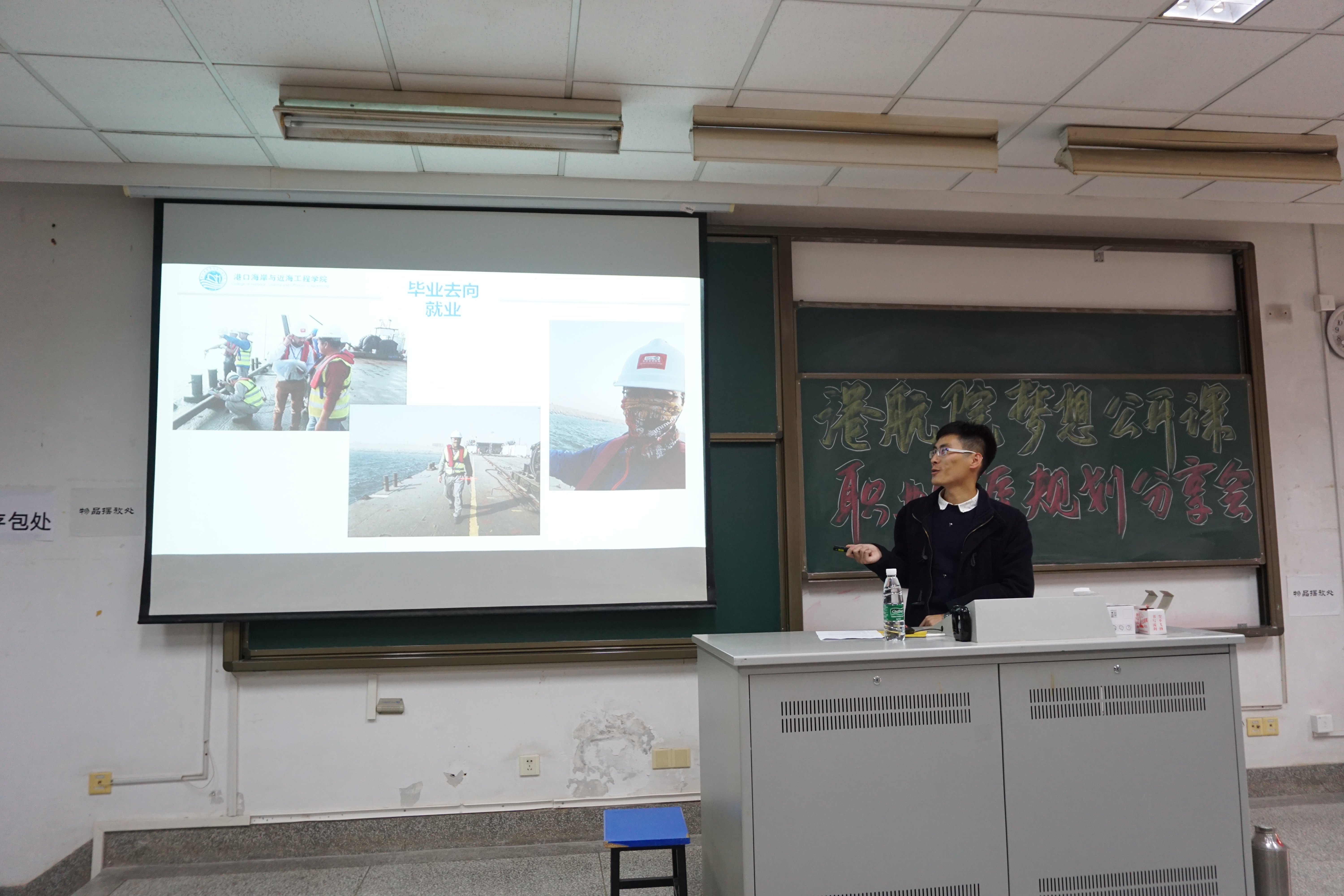 11月22日下午四点,“港航青年说”2018-2019学年第5期在江宁校区致用217教室举办。本次港航青年说邀请到学院2017届优秀毕业生、2016级本科生辅导员张同鑫老师,以其专业素养与参赛经验,就港航专业学生的职业生涯规划作分享交流。