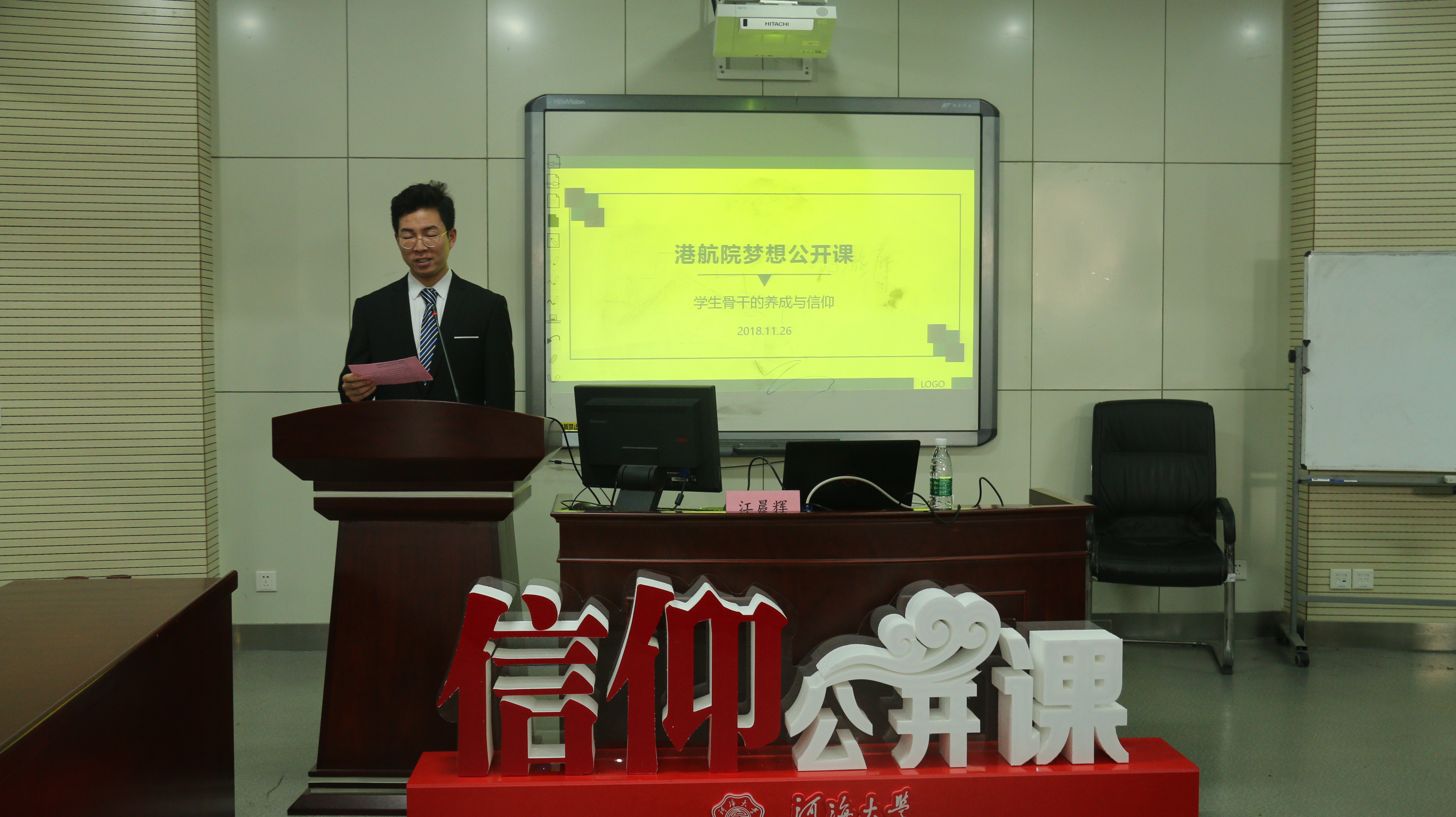 11月26日下午三点,我院梦想公开课之学生骨干的养成与信仰在江宁校区博学楼A411举行。本次讲座邀请到了学校研究生会主席江晨辉同学,他以“因为热爱,所以坚持”为主题,向17级和18级同学们分享了他作为学生骨干,对于信仰和梦想的坚守与践行。