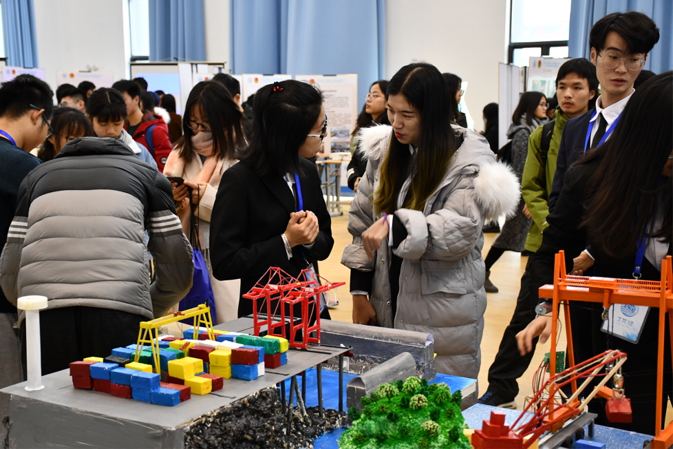展出了近一年多来的创训成果及学生科技活动作品。杨瑶、刘伟等同学向大家展示了其小组发明的“智能式水面垃圾收集器”, 四位学生科协讲解员为大家讲述水工模型大赛优秀获奖作品(“帆启龙门”、“绿色自动化港口”)及起重机模型大赛优秀获奖作品“红三角起重机”等模型中蕴藏的科学知识,吸引了大批同学驻足,营造出浓厚的交流氛围。