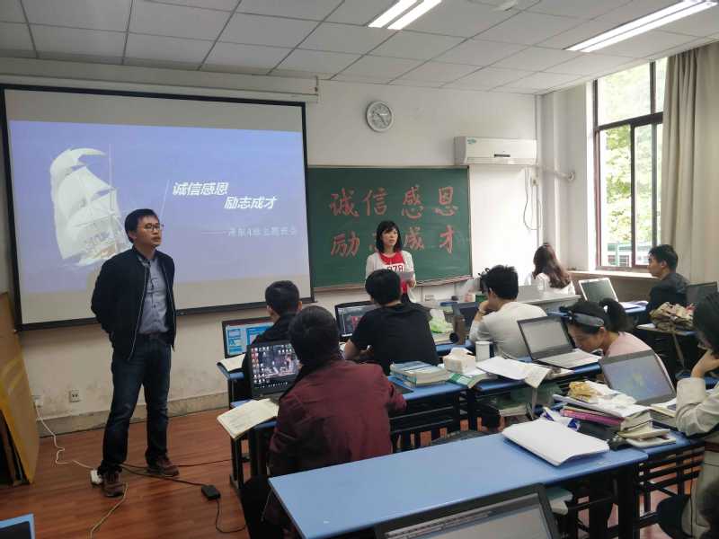 2019年4月24日,为了迎接学校学风建设月暨诚信·励志·感恩主题教育月,av影片 2019届各班在毕业设计教室组织开展了主题班会活动。参加本次活动的有学院辅导员季超老师、学院教学秘书刘瑶老师以及av影片 2019届本科毕业生。