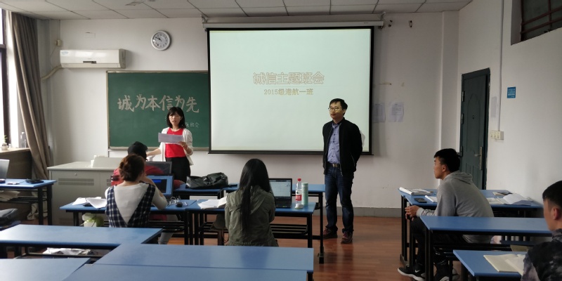 随后,各班围绕主题,分别举办了主题班会。15级港航一班的班会主题是“诚为本,信为先”;港航二班班会围绕“诚信、励志、感恩”展开;“诚实守信,感恩励志”是港航三班的班会内容;港航四班开展了以“诚信感恩、励志成才”为题的班会。会上同学们反响强烈,踊跃发言,进一步提高了大家诚实守信的意识,激发学海争先的信念。