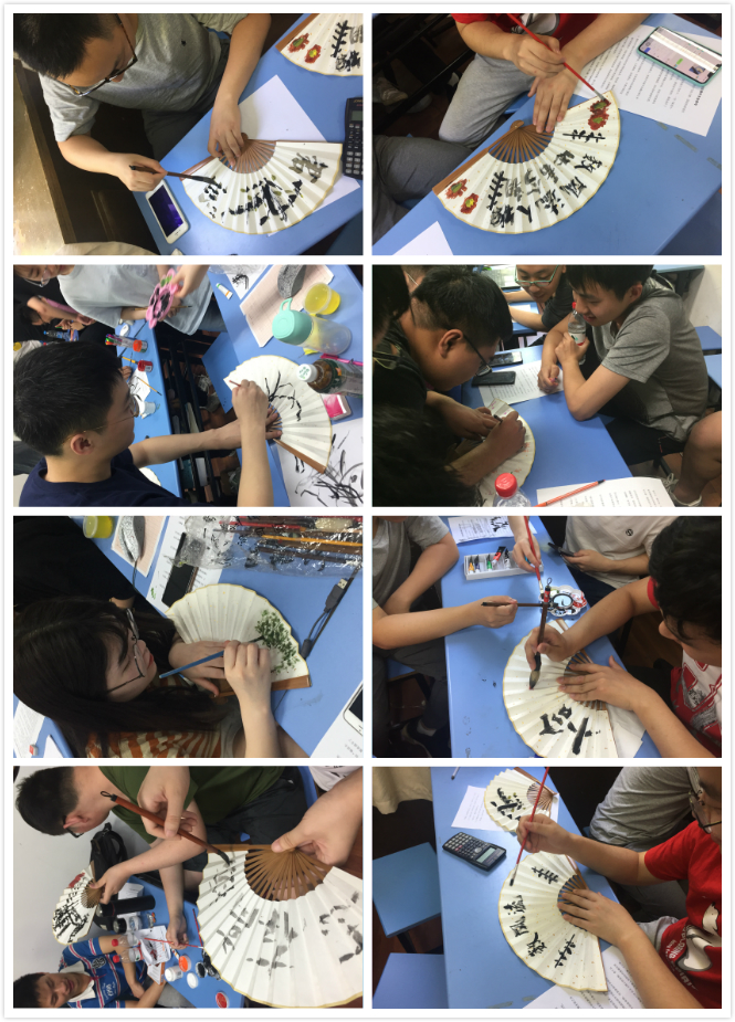 班会第二阶段,同学们分组开展了以“廉洁诚信,伴我同行”为主题的绘画活动。全班同学被分为三组,每组创作一把廉洁伞与三把诚信扇。同学们用油彩水墨在准备好的空白扇面和纸伞、纱伞上绘画出自己心中的廉洁形象。有的画竹,有的画梅,有的题字,可谓是各显神通,氛围十分热烈。活动中,高书记也亲手绘制了一幅廉洁伞,并在纸扇题上了“修身 立德 廉洁 自律”八个字,作为毕业赠礼,送给港航4班的同学们。而同学们巧妙构思,绘制了4副作品,赠送给到场的各位老师。