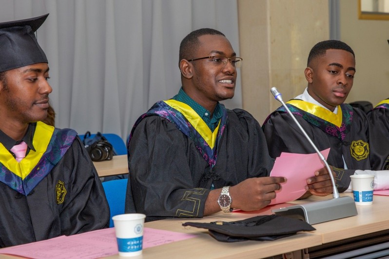 2019年6月18日上午,2019届av影片 -中国港湾本科留学生班(中港班)毕业典礼于闻天馆102隆重举行。av影片 党委副书记郭继超,中国港湾工程有限责任公司副总经理、总工程师刘宝河,安哥拉交通部洛比托港务局Angelo Diur Kassul副局长,以及多名校企代表出席典礼。来自安哥拉、巴布亚新几内亚和牙买加的14名毕业生参加典礼。av影片 党委书记胡忠华主持了典礼仪式。