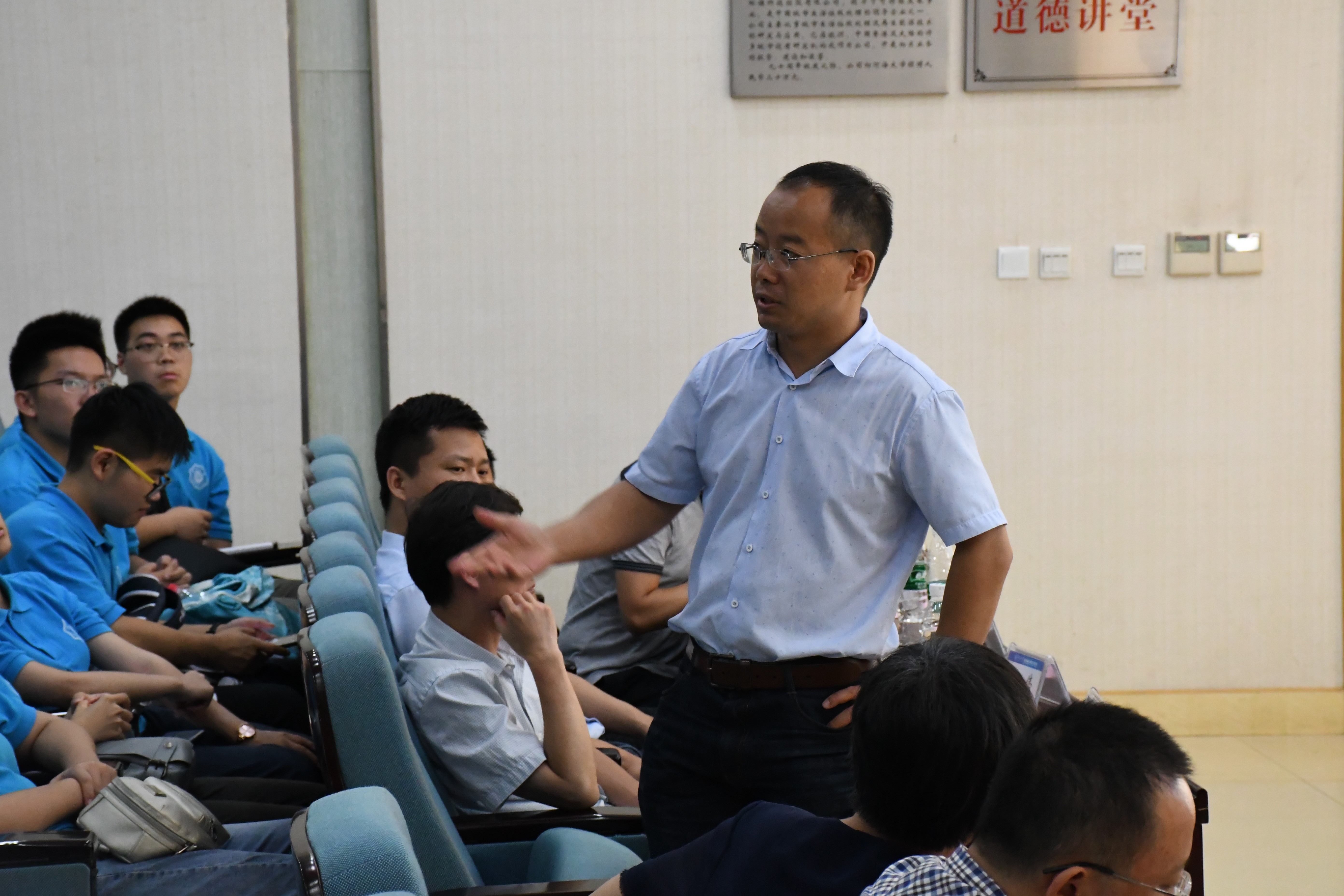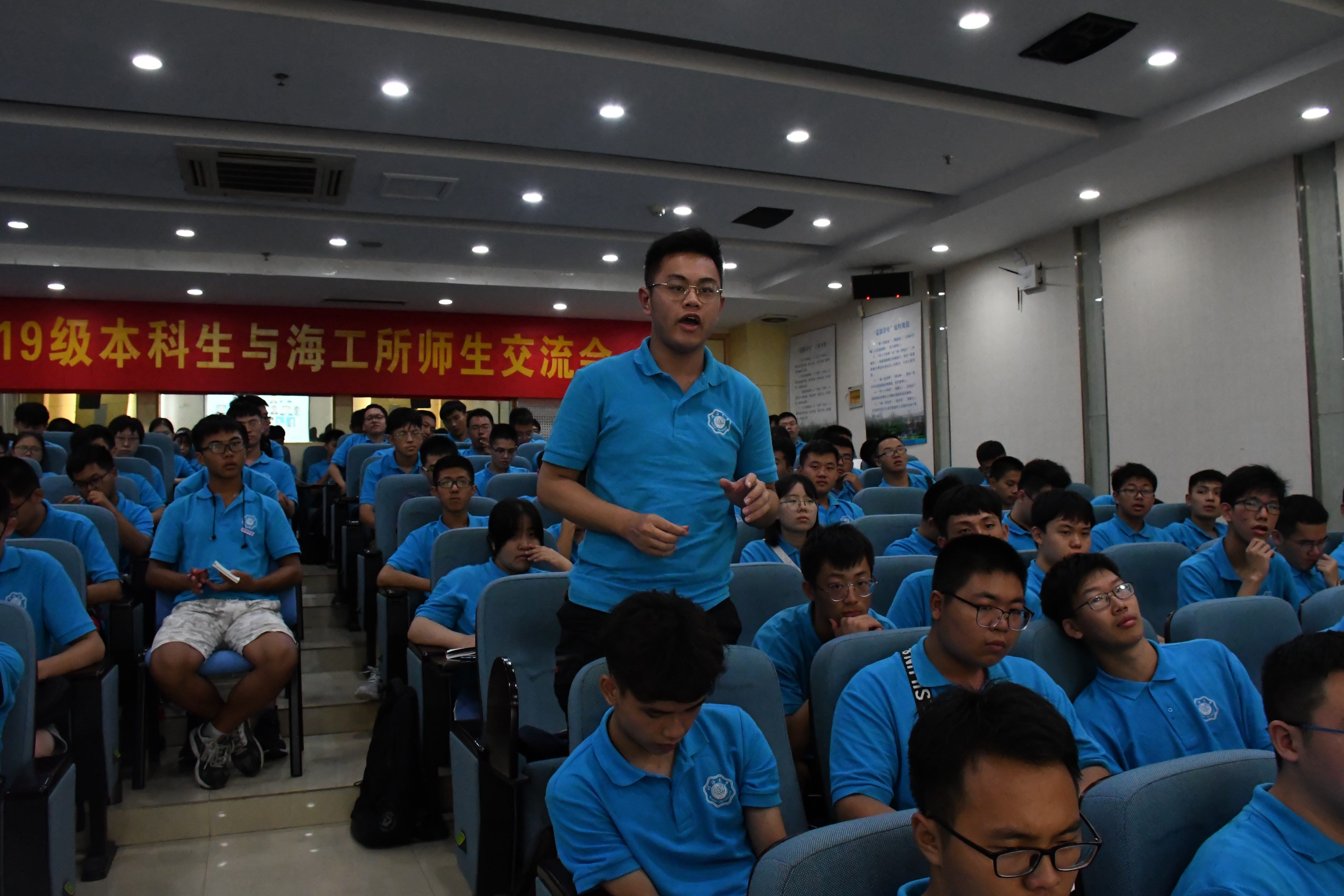 8月28日下午一点半,2019级全体本科新生来到西康路校区,于闻天馆113与海工所的老师们进行交流座谈。