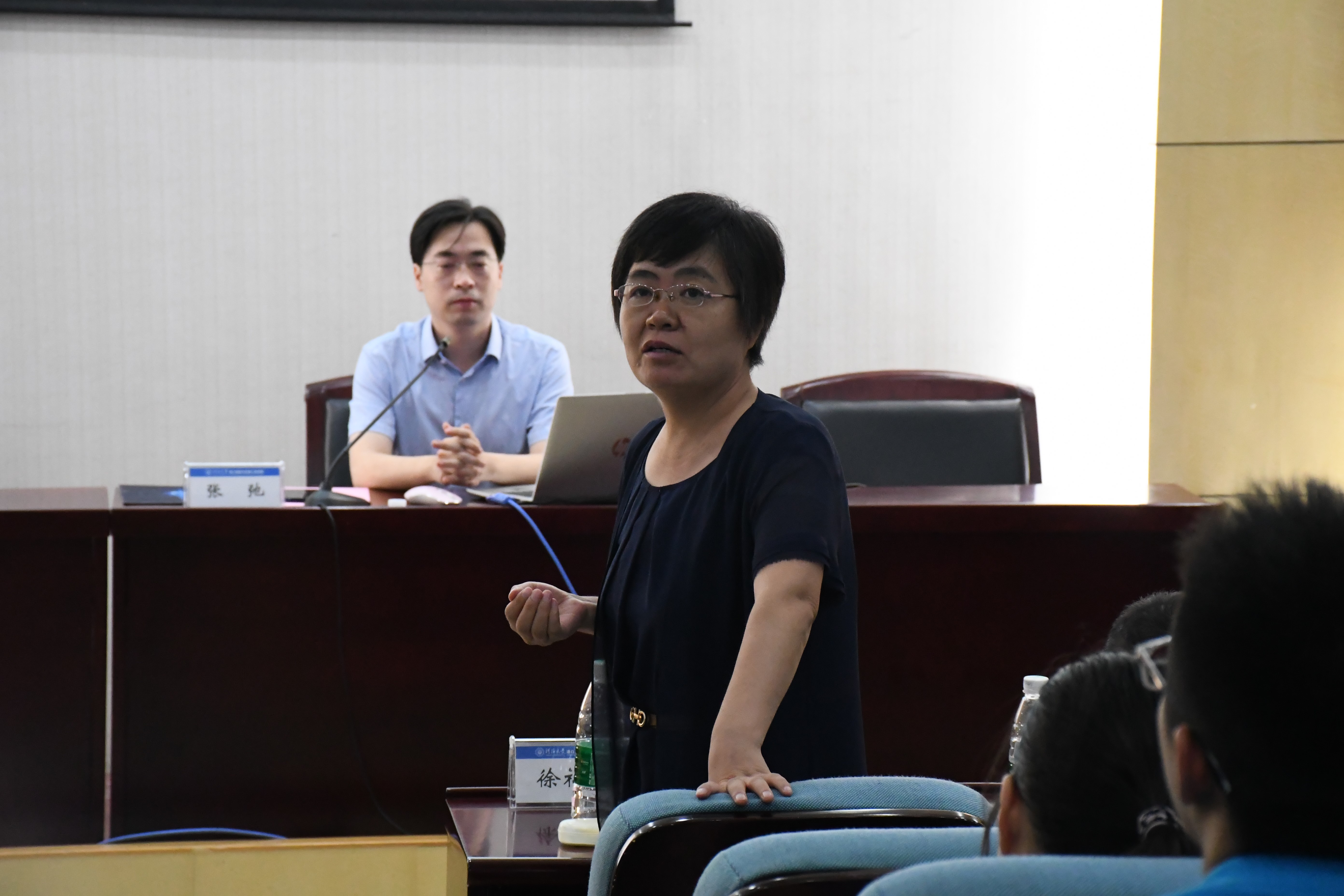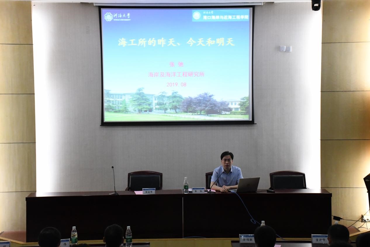 此次交流特邀学院海岸及海洋工程研究所所长陶爱峰教授、支部书记张弛教授、张淑华教授、徐福敏教授、吴德安副教授、童朝锋副教授、陈伟老师、冯曦老师、时健老师、张炫老师以及倪问池老师作为嘉宾,张弛教授作为主讲人向同学们讲述海工所的发展历史。