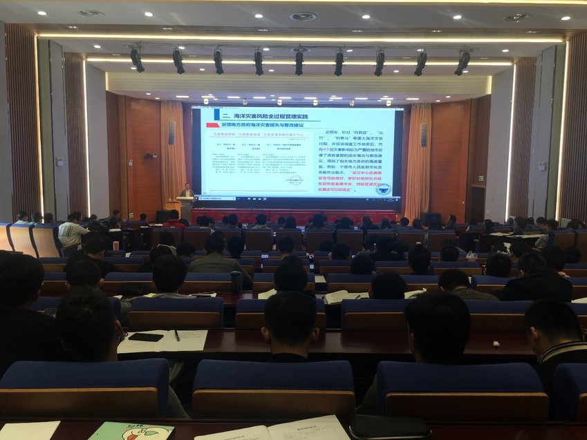 2019年10月18日上午,海岸灾害及防护教育部重点实验室系列特邀学术报告会在av影片 科学会堂3楼举行。自然资源部海洋减灾中心王斌主任受邀做了题为“海洋灾害风险全过程管理的实践探索”的学术报告。