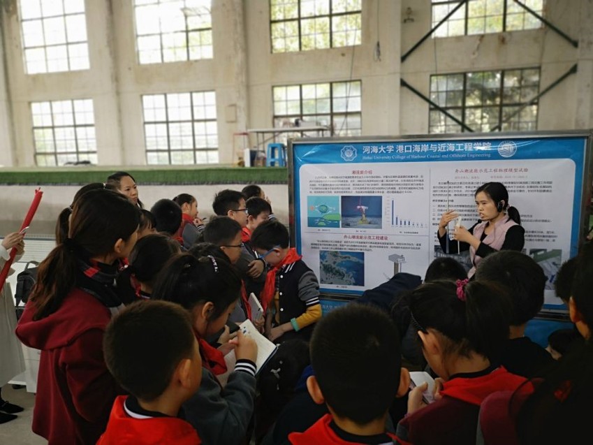 重点实验室主任龚政教授图文并茂的介绍了海洋资源的多样性,讲述了海岸灾害的破坏性,以及在海岸动力地貌与河口保护方面所做的工作;相关老师组织同学观摩了波浪与防波提相互作用模型试验和潮流能发电模型试验,直观地科普了有效防护海洋灾害和充分利用海岸带资源的工程措施;学院实验中心老师参与组织本次开放日活动。