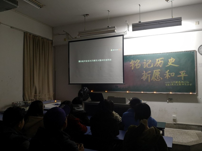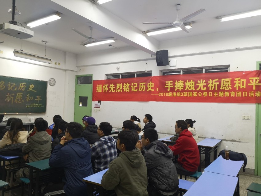 2019年12月12日晚6点半,2018级港航3班全体同学在致用楼205举行“铭记历史,祈愿和平”国家公祭日主题教育活动,深切缅怀日本侵略者杀戮的死难同胞,铭记历史。