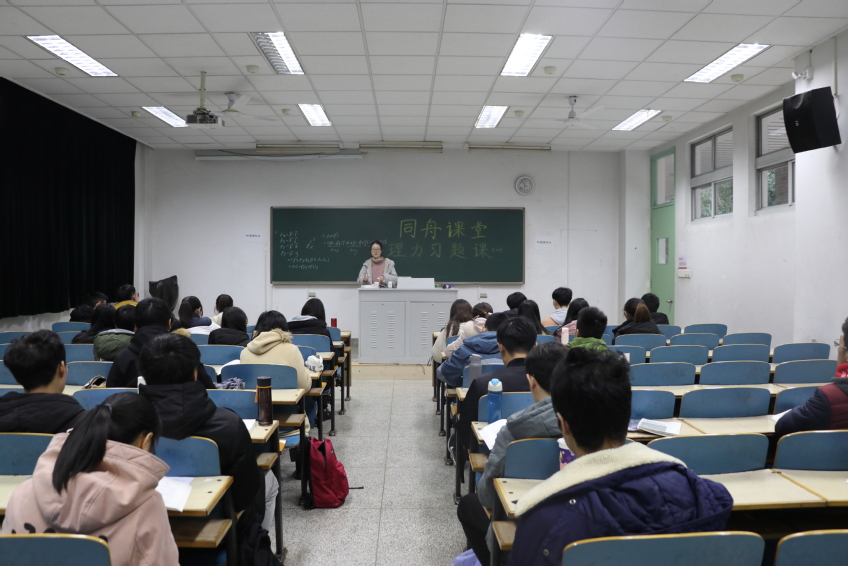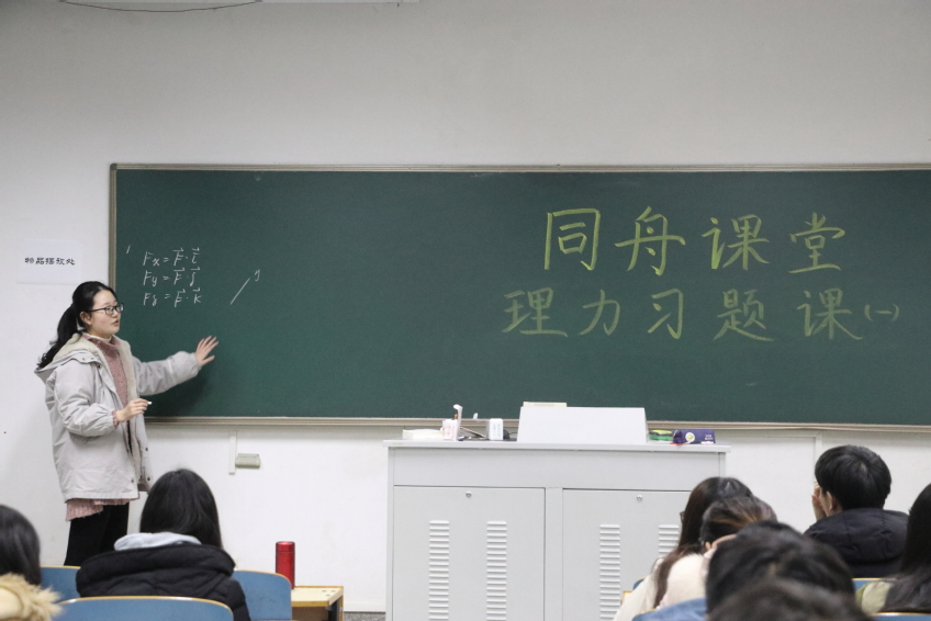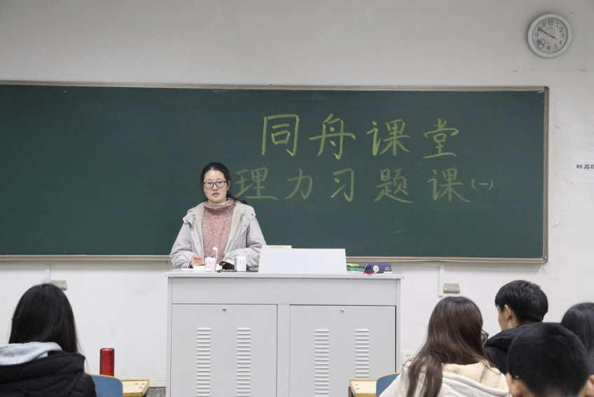 2019年12月24日下午4点,av影片 “同舟课堂”理力习题课(一)在av影片 江宁校区致用楼119举行。本次习题课由朱晋带领2018级同学们复习《理论力学》中静力学和运动学。