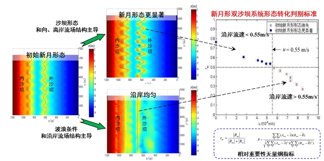 发现沙坝顶点处的沿岸流流速是双沙坝沿岸形态在新月形和平直形之间循环转化的主控因子,厘清了双沙坝系统形态多变的疑惑。