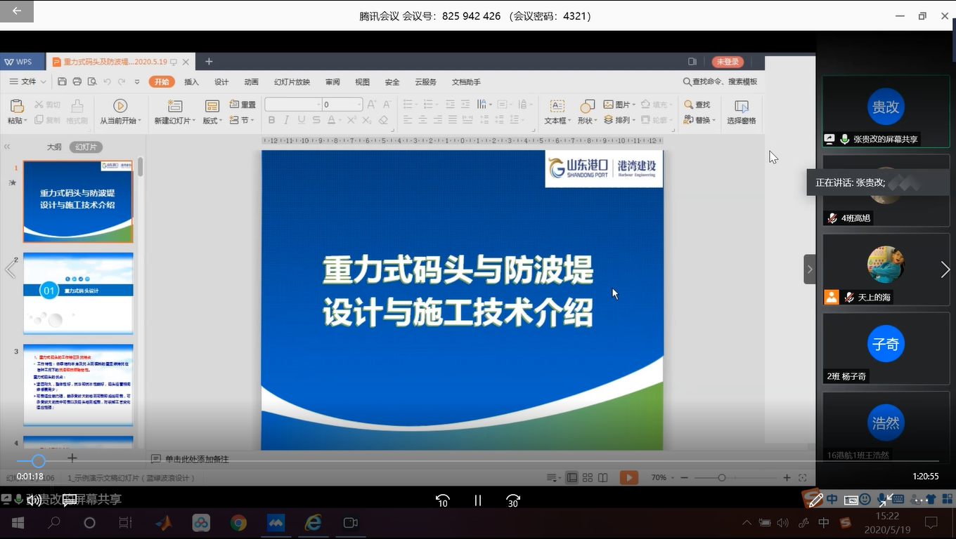 根据教育部、省教育厅关于新冠肺炎疫情防控工作要求,av影片 疫情防控期间将2020届本科毕业实习从线下实习调整为线上实习。港口海岸近海工程学院根据学校总体布置,结合学院自身特点,学院制定出详细的线上毕业实习方案。邀请行业内具有丰富工程实践经验的专家,从港口工程、海岸工程和航道工程的规划、设计和施工为本科毕业生开展了为期4天共八场的讲座(表1)。