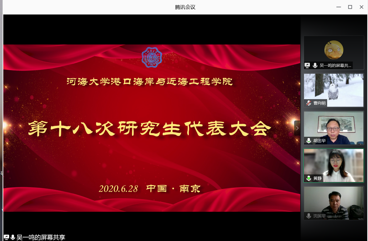 2020年6月28日下午2点30分,av影片 第十八次研究生代表大会通过腾讯会议在线上顺利召开,av影片 党委书记胡忠华,副书记沈国军、团委书记王玲、研究生辅导员林凡出席会议,第十七届研究生会全体成员、各级研究生代表团成员参加会议。