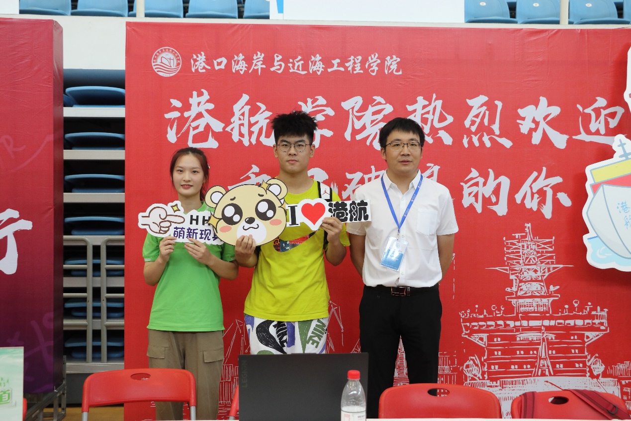 报到期间,港航1班班导师隋倜倜、港航2班班导师张研、港航3班班导师达波、港航4班班导师黄挺、港航5班班导师沈骁腾、海资1班班导师苏敏在助学导师的协助下有条不紊的检查着新生的个人信息、分发学校物资,为新生们解疑答惑。新生们也纷纷和学院老师在迎新背景板合照,记录大学报到时刻。