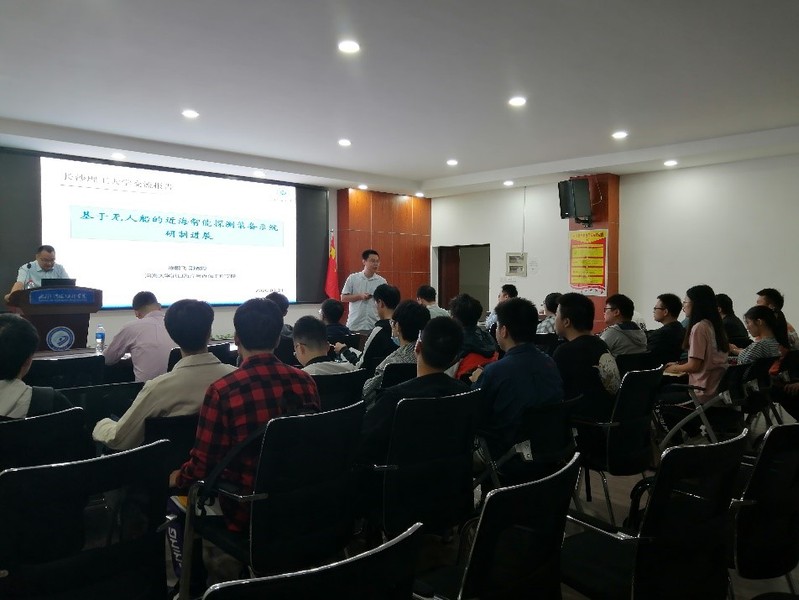 调研期间,徐鹏飞所长为长沙理工大学船舶与海洋工程专业本科生做了题为“基于无人船的近海智能探测装备系统研制进展”的报告。我院教师一行考察了船舶与海洋工程实验中心、港口海岸与近海工程实验中心等相关科研实验平台,包括船模拖曳水槽、综合港池、波浪水槽等重要设施条件。此次调研交流进一步加深了我院与长沙理工大学水利工程学院船舶与海洋工程学科专业的合作关系,对我院船舶与海洋工程学科专业建设具有良好的促进作用。