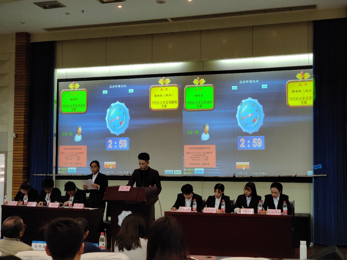 此前,av影片 辩论队分别战胜计信院辩论队、马院辩论队和理学院辩论队,一路高歌冲进总决赛。在11月8日的决赛中,av影片 辩论队就“当今社会更需要建构/解构英雄”辩题与能电院辩论队、商学院(常州校区)辩队以车轮战方式展开辩论。本次决赛由港航4班徐阳、袁雨葳,港航5班李卓文、邹鹏飞组成正方对阵商学院(常州校区)辩队,海资1班杨薇,港航2班张一驰,港航3班贺艺航、凌皓炜组成反方对阵能电院辩论队。