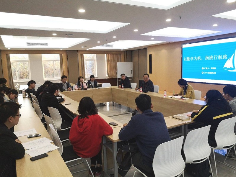 班会由辅导员王玲老师主持,班长范琦琦首先向各位老师和班级同学做了题为《以勤学为帆,扬践行航路》的班级建设汇报,分别从学业成绩、科研竞赛、思想建设,生活工作和未来展望等五个方面详细展开。之后,胡书记对2017级港航2班在过去的三年中取得的成绩给予了充分的肯定,并鼓励同学们在剩下的一年中,再接再厉,敢于争优争先。随后,书记亲切询问了班级同学保研、考研、工作等情况。他指出,同学们应该明晰攻读硕士研究生的真正目的,不能人云亦云,并鼓励同学们投身于祖国的基础设施建设中,充分发挥个人优势为社会创造价值。