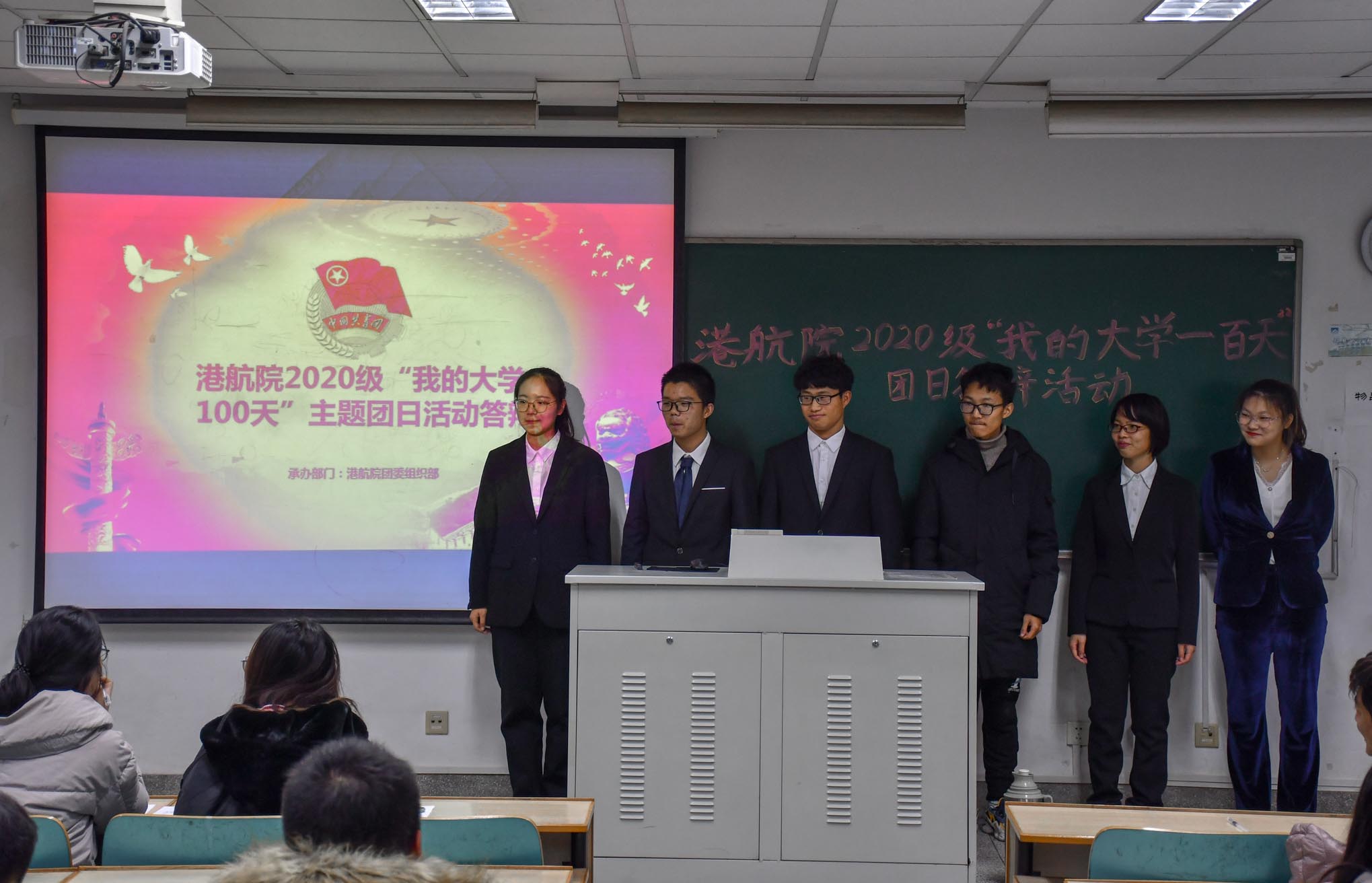 以在大学度过的一百天为核心,立足于对未来的展望,各位团支书们结合党和国家所提出的新一代大学生的责任与使命,策划了一系列主题团日活动,明确凸显了“勇挑重担、持续奋斗”的主题。