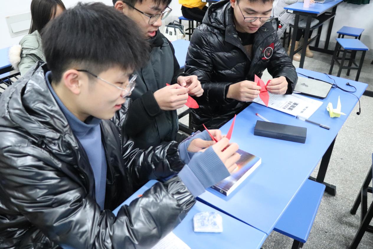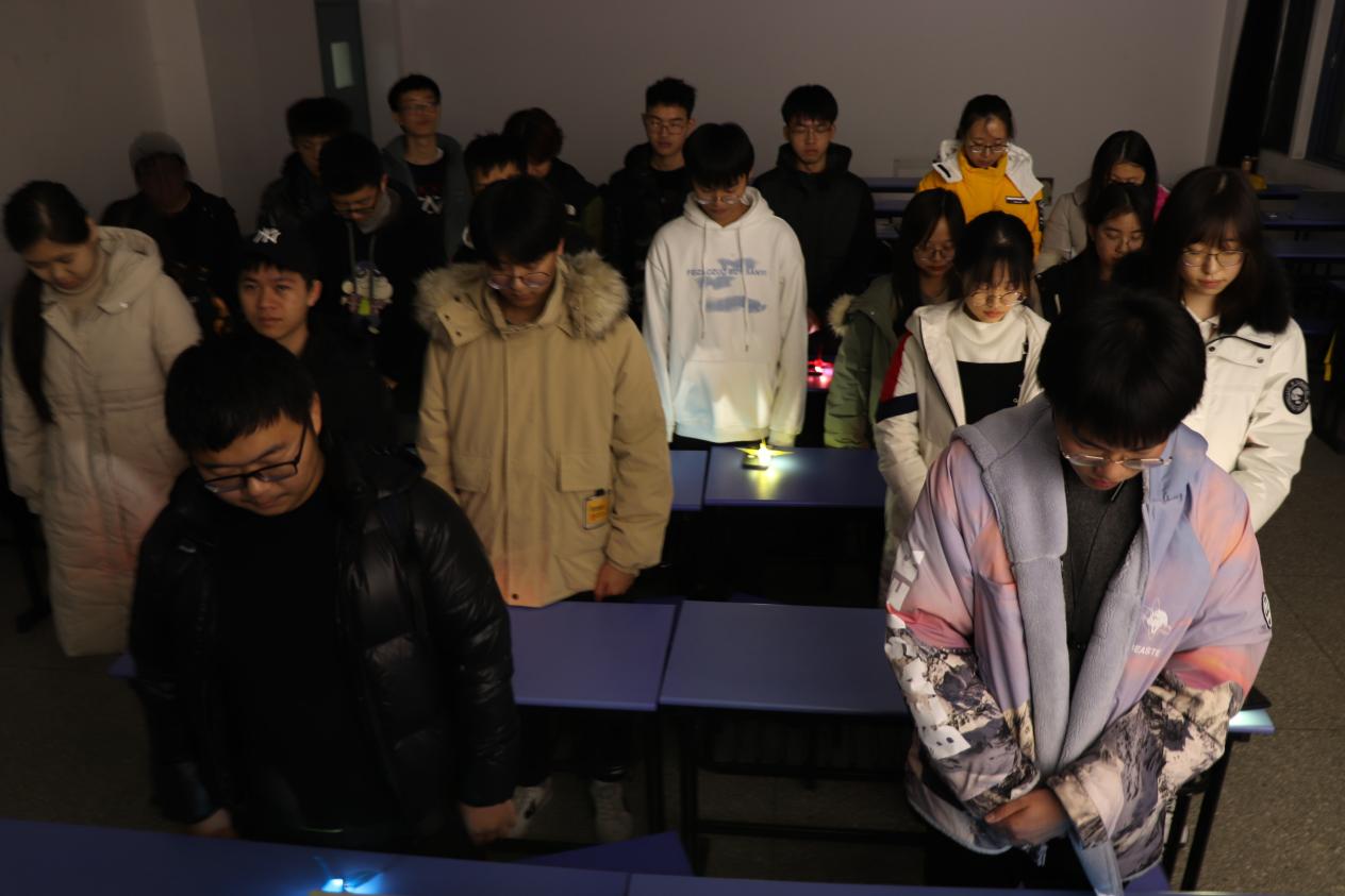在公祭日到来之际,团支书籍新元向全体学生解读了国家公祭日的悼念意义。同学们通过叠寄托哀思的千纸鹤来缅怀遇难同胞。随后,班级同学集体观看了电影《金陵十三钗》,最后,班级同学进行了默哀,所有人以手电筒代替蜡烛,围着光亮缓缓低下头闭上眼睛,悼念在一九三七年南京大屠杀中不幸遇难的三十万同胞,追思这段历史之殇,铭记这段民族之痛,用无声的思念表达了对逝者的悲悼。