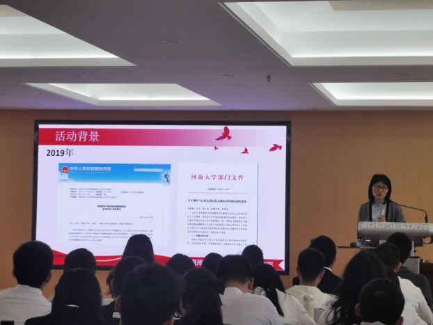 陈家骥同学分享了假期返回家乡安徽王家坝进行社会实践的经历,展示了王家坝在两次洪水中的重要作用及王家坝在政策支持和几代人努力下脱贫的故事,展现了“王家坝精神”的风采。