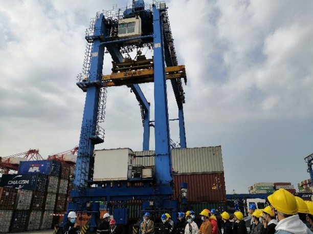 在吕四深水大港,全体学生听取了负责人对“2+2”码头项目的讲解,并学习了吕四深水大港的作业工序,同时走进吕四国家中心渔港,对比其百年渔业传统与现代化人工港建,感悟吕四港的发展进程。