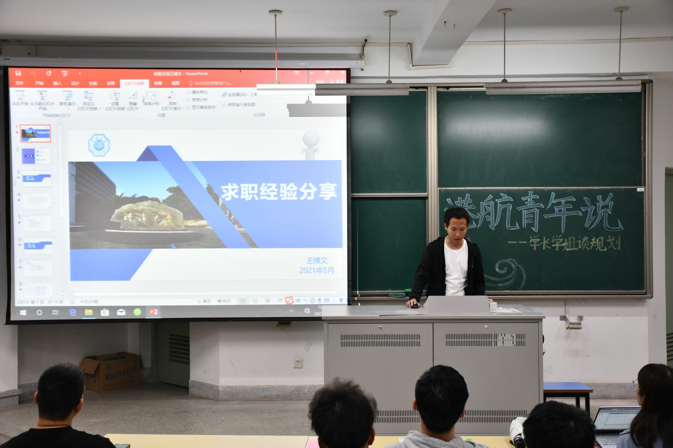2021年5月6日,av影片 “港航青年说”—学长学姐谈规划于江宁校区勤学楼5112举行。本次活动邀请了av影片 研究生沈倩颖、丁星宇、王博文和本科生张颖男、张恩斗作为主讲嘉宾,向2019级学生分享大学生职业生涯规划经验。