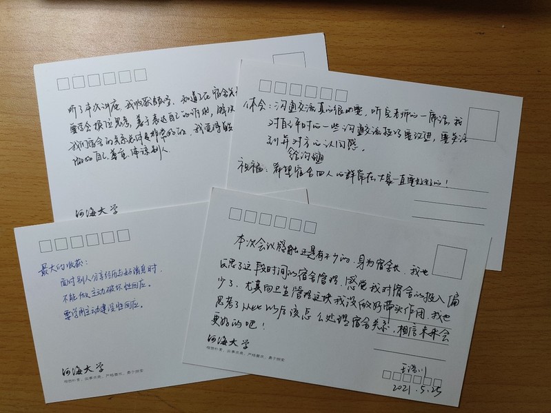 本次活动开始前,心理委员向每位参与的学生发放av影片 主题明信片。同学们书面记录下自己对于听取讲座时的感受和对于未来宿舍生活的期待,将讲座的体悟和对社区建设的期许存放于信箱中。